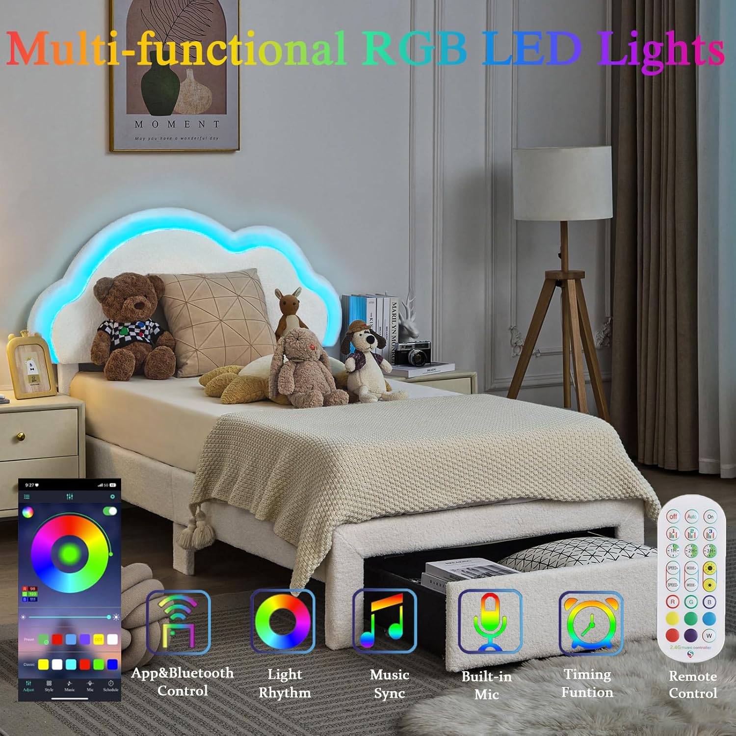 - Soft Rounded Corners: The Twin Size Bed Frame with Headboard features a contemporary look with Soft Rounded Corners, ensuring a cozy atmosphere in any bedroom while providing extra safety for children and pets.