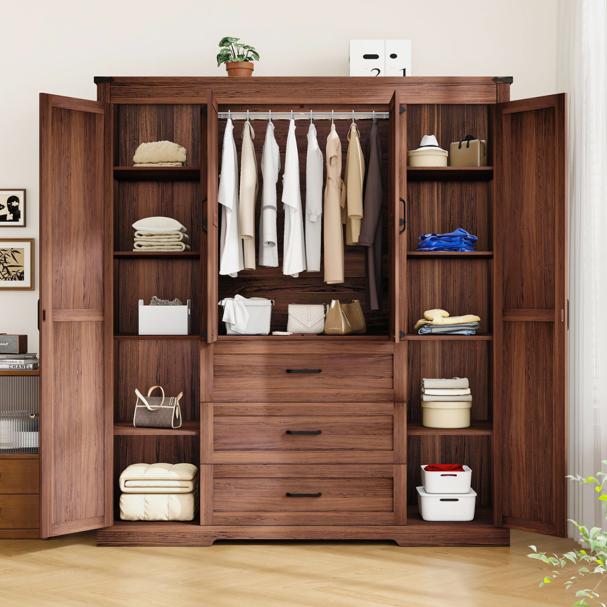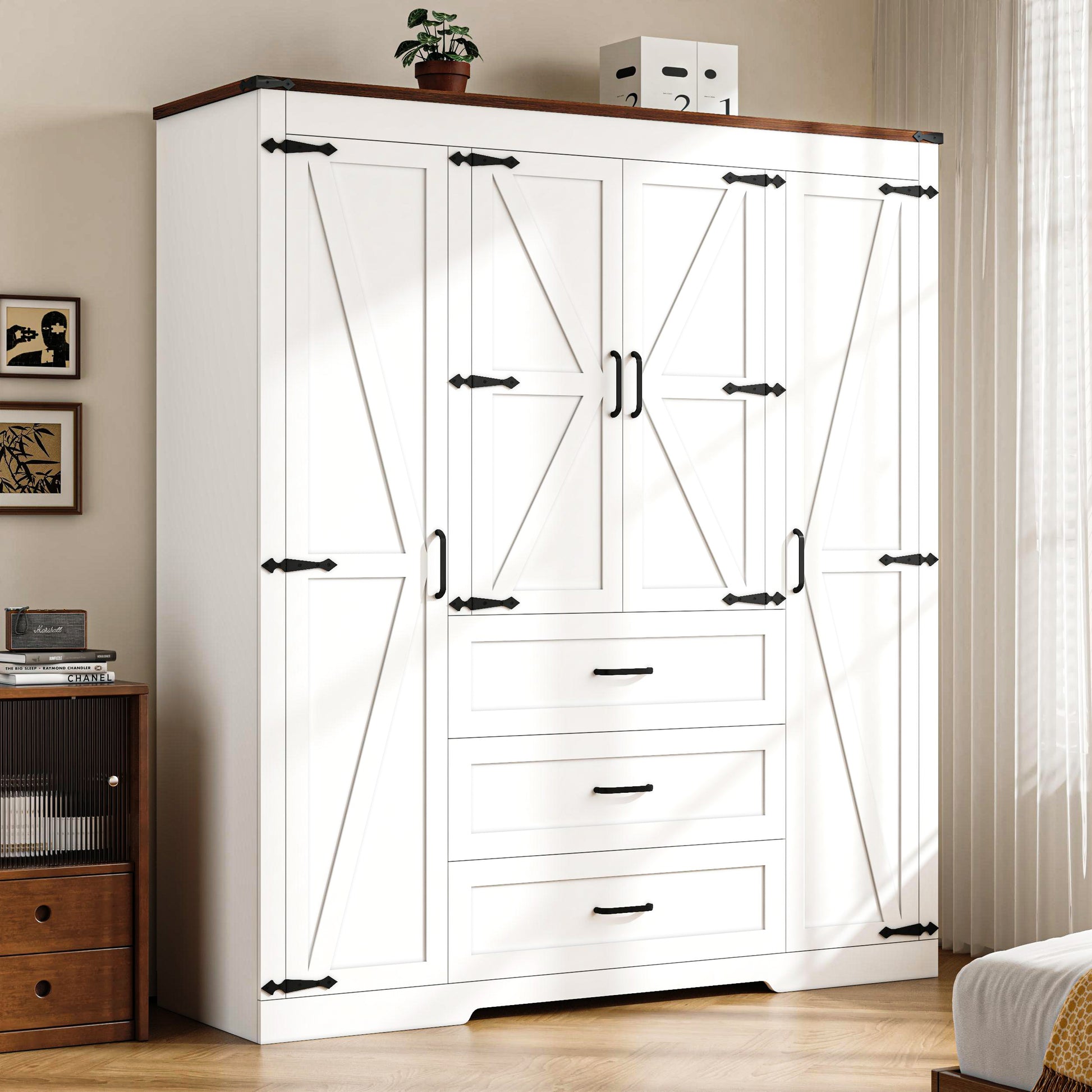 Farmhouse 4 Door Armoire Wardrobe with 3 Drawers and Drawers
