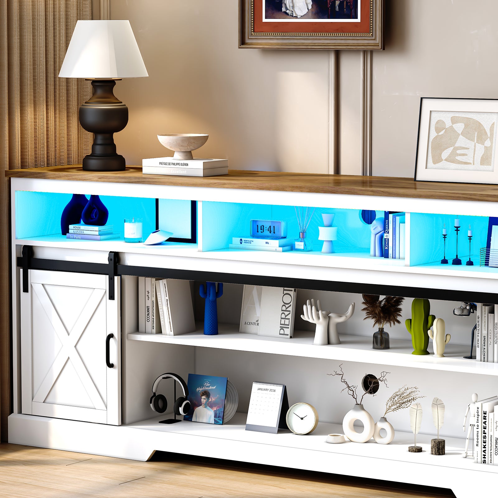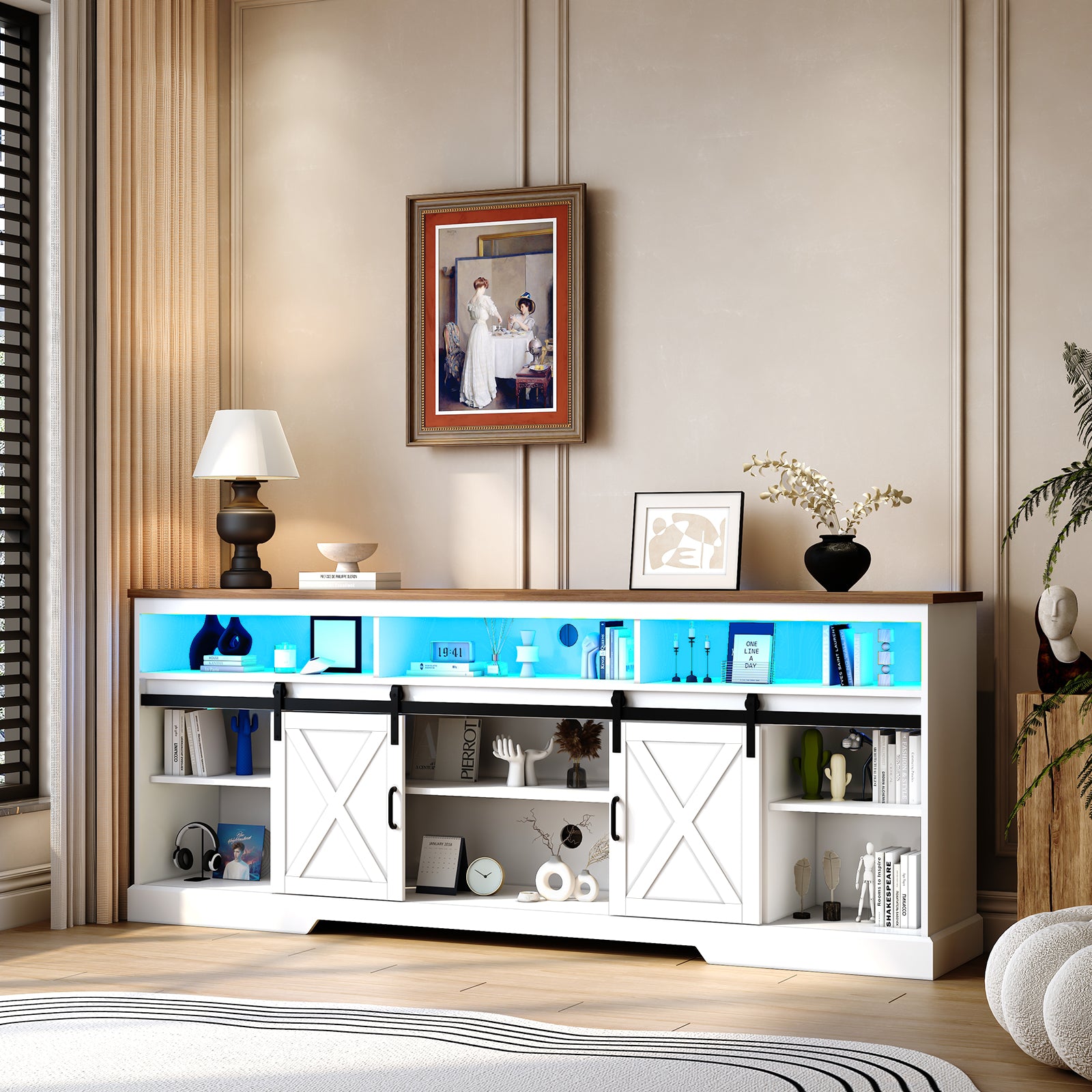 80.7“ Farmhouse TV Stand for 80/85/90 Inch TVs with LED Lights