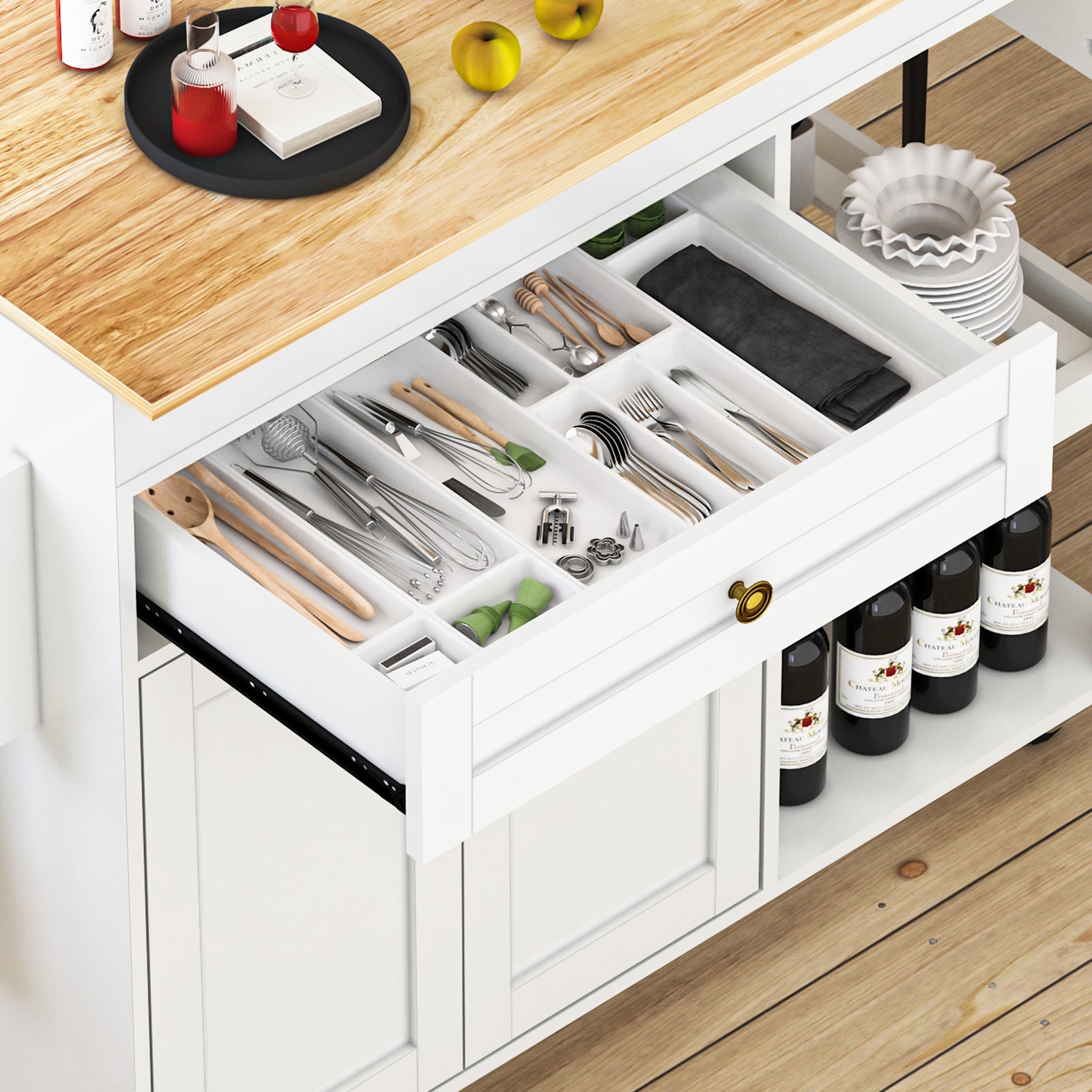 - Different Usage Scenarios: The drawer extension provides extra counter space for preparing meals, entertaining, or working from home. Expanded to enjoy meals and lounge around, this feature adds flexibility and makes the island ideal for multitasking in busy kitchens