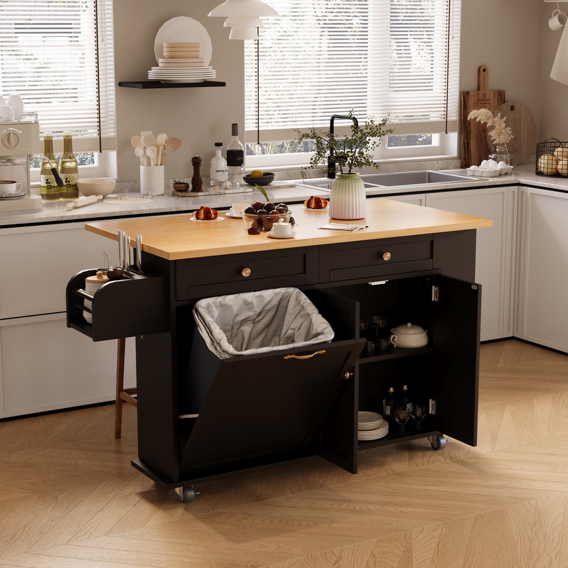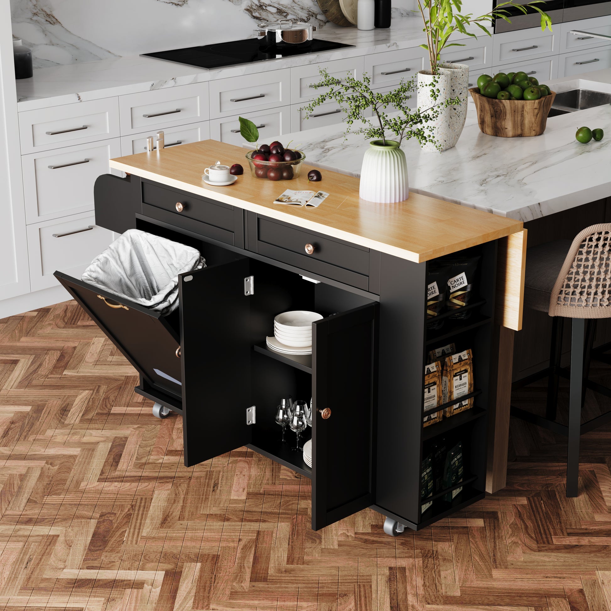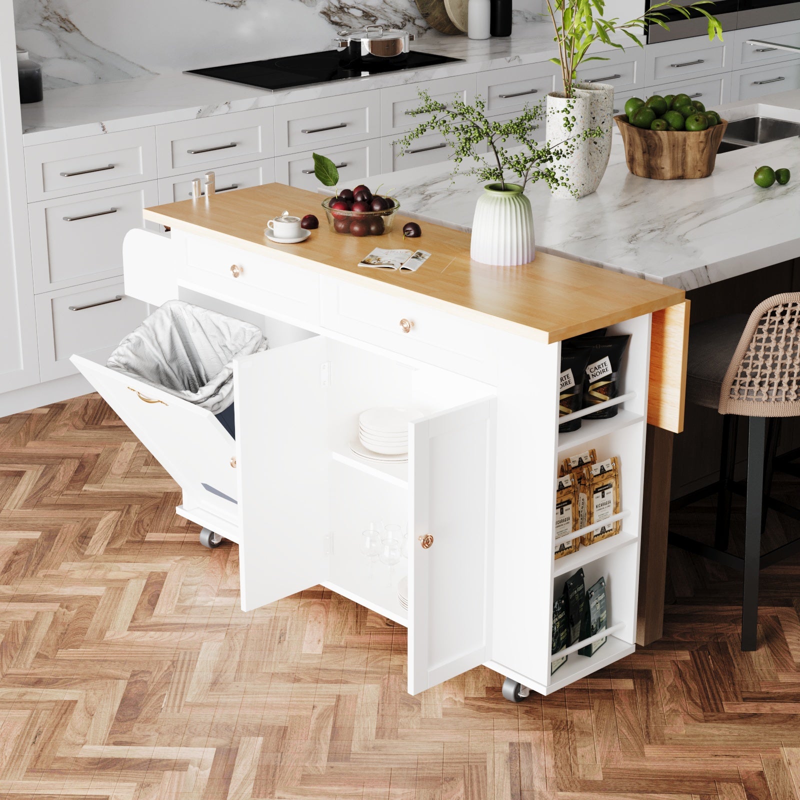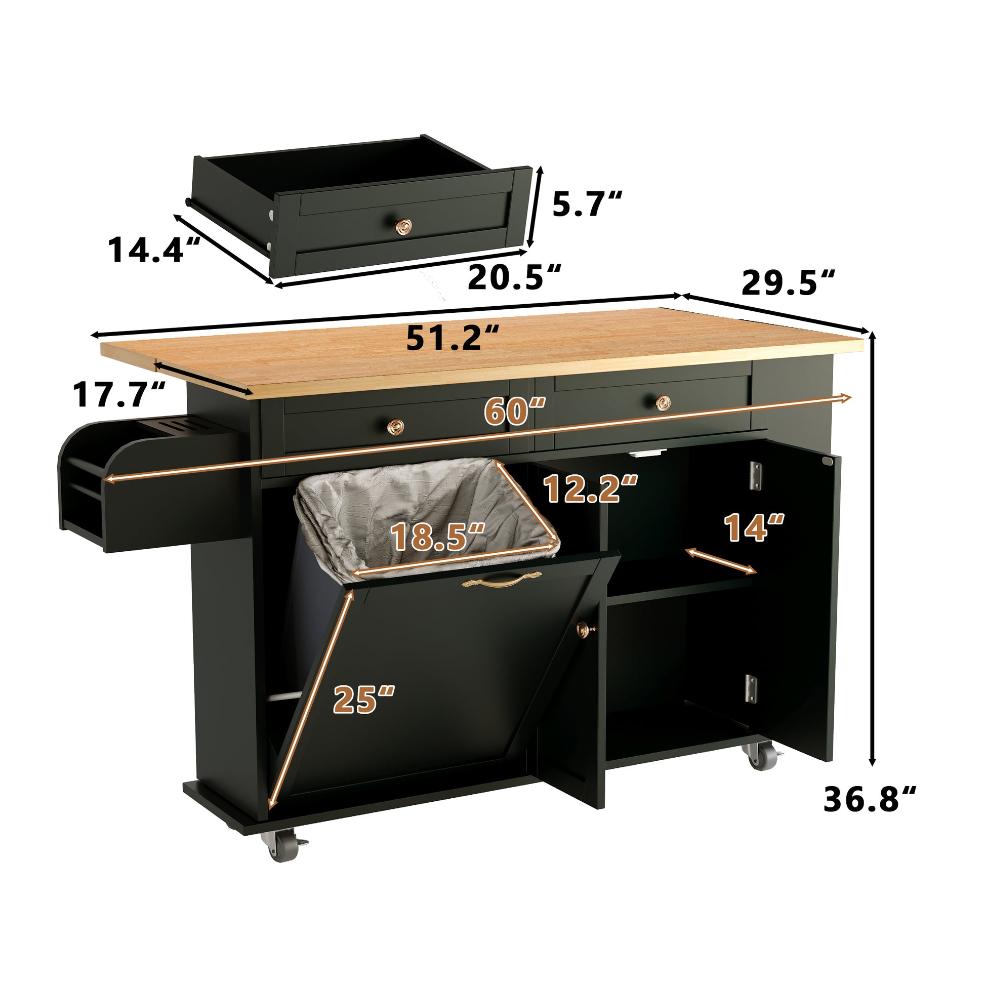 60'' Kitchen Island with Drop Leaf and Tilt Out Trash Can Cabinet