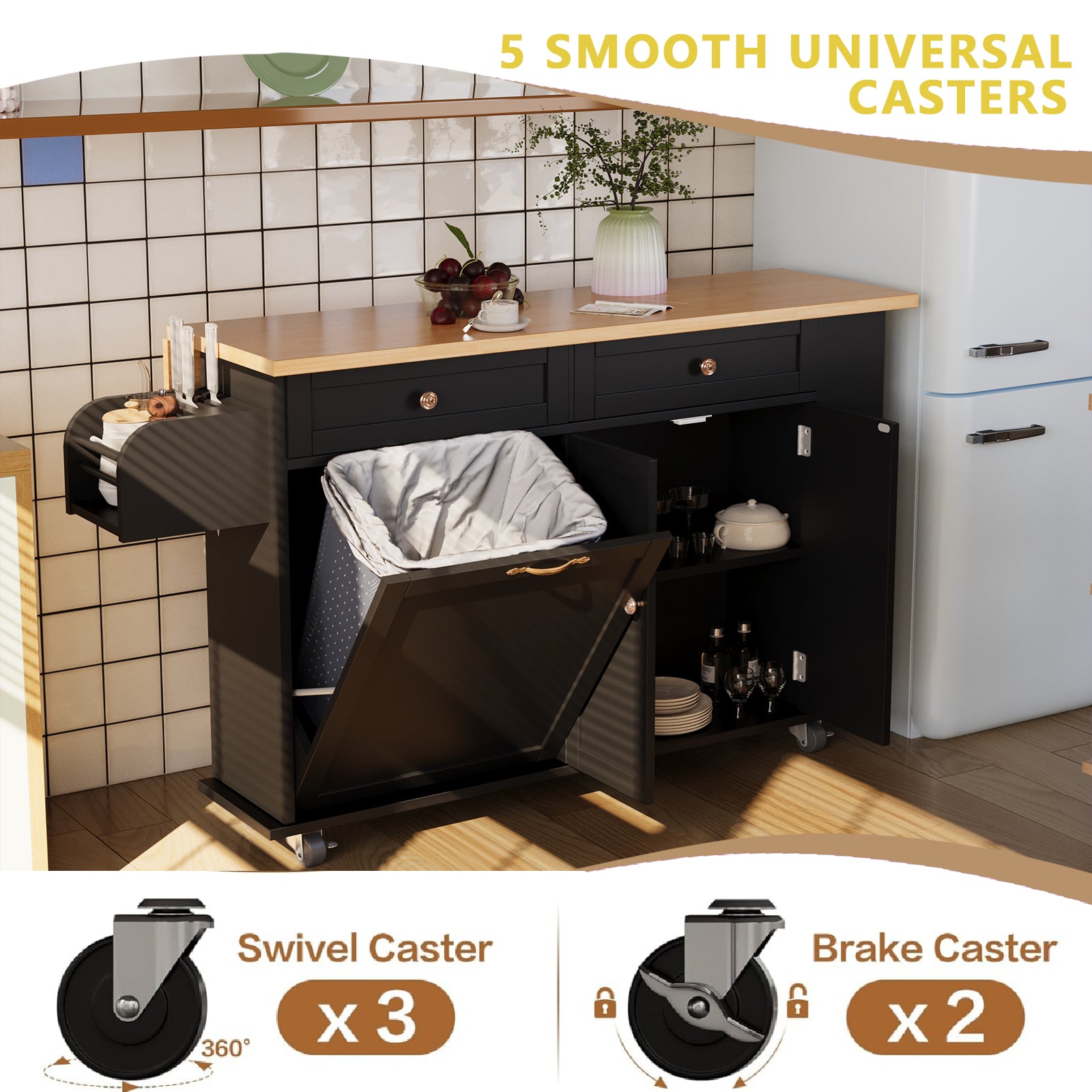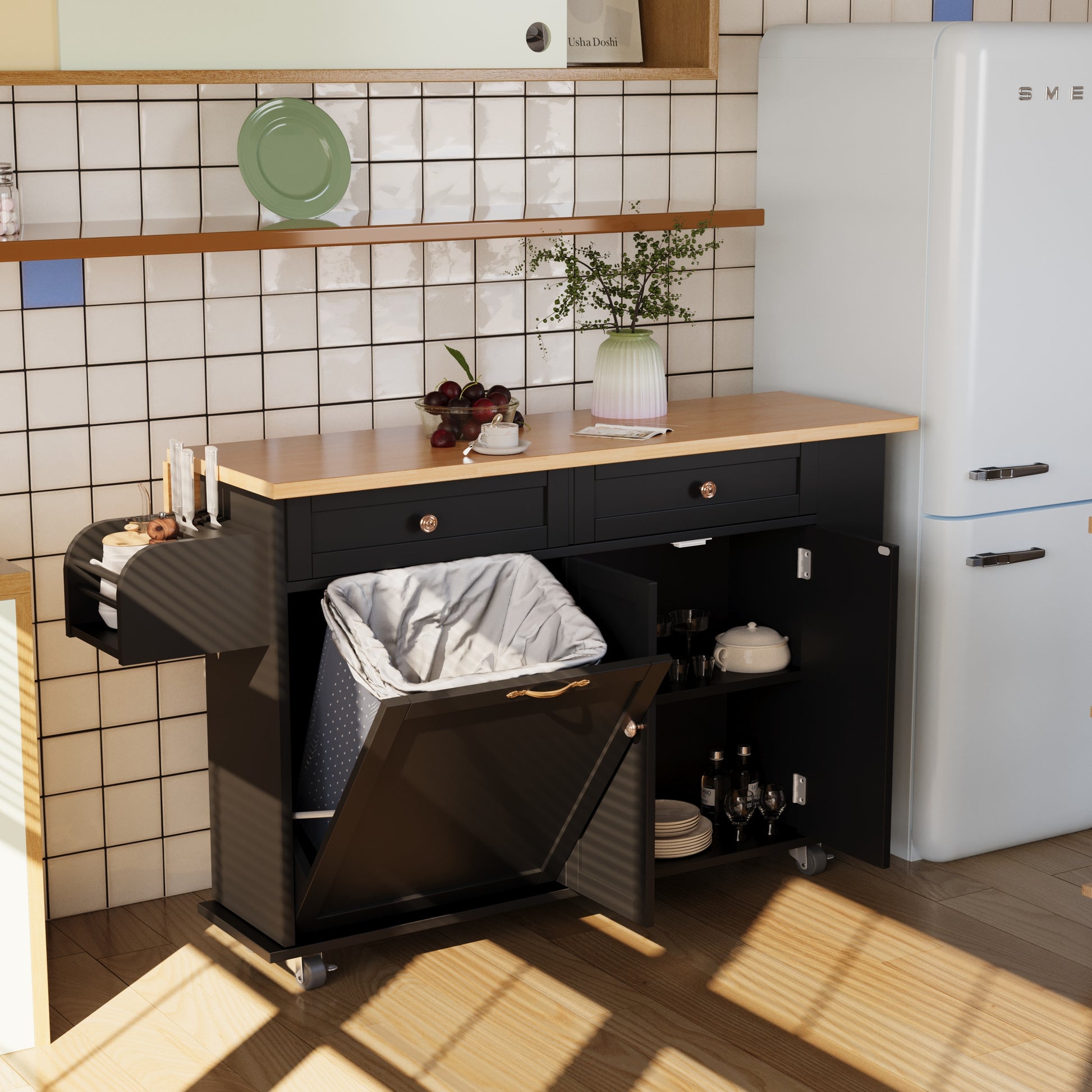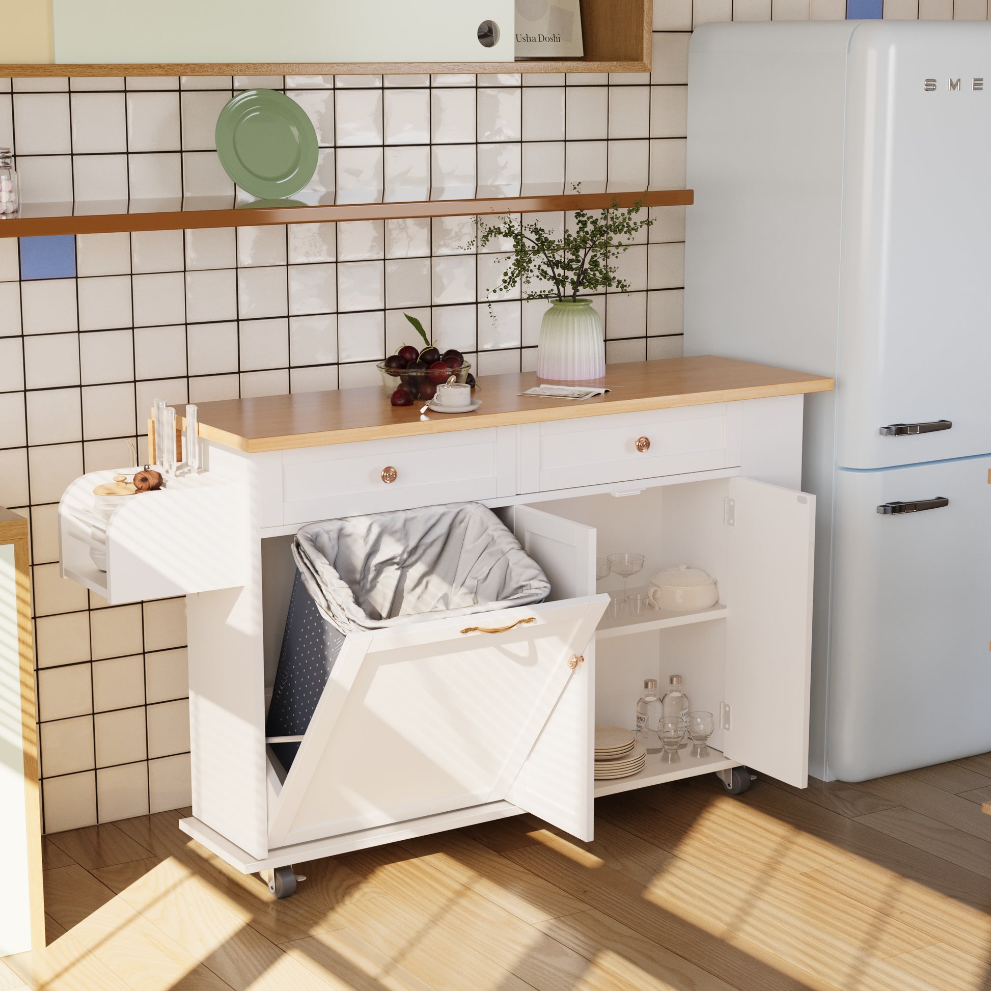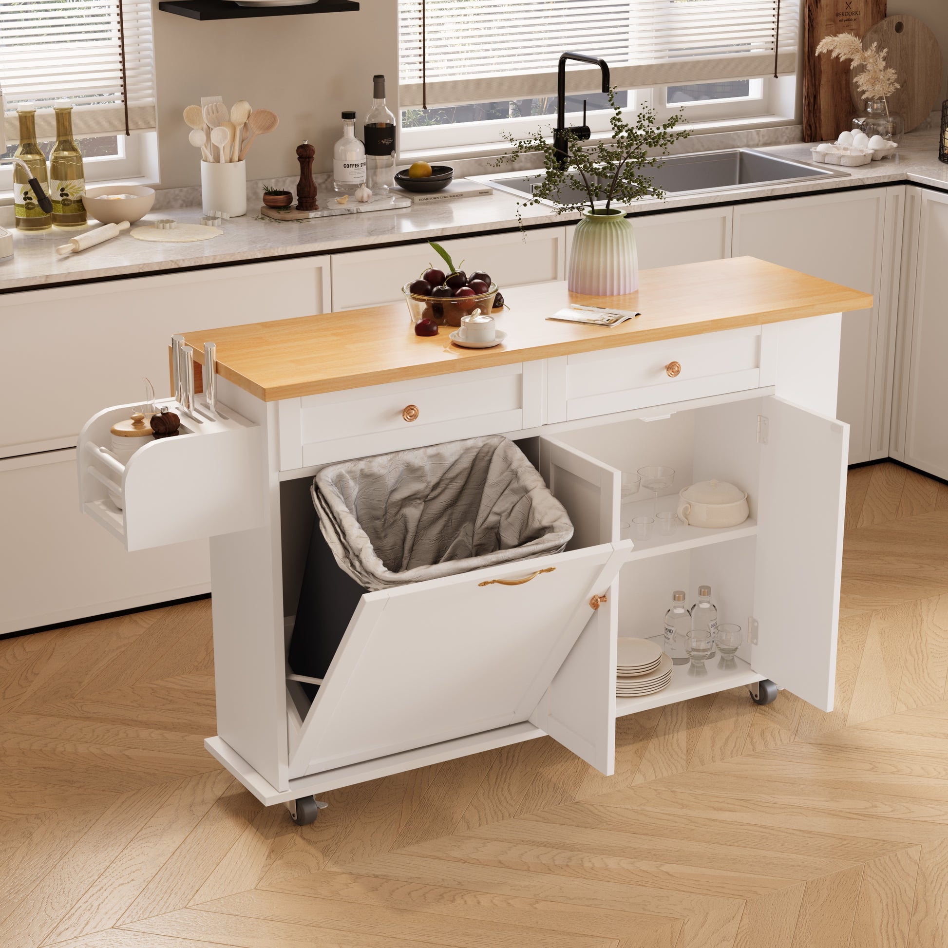 60'' Kitchen Island with Drop Leaf and Tilt Out Trash Can Cabinet