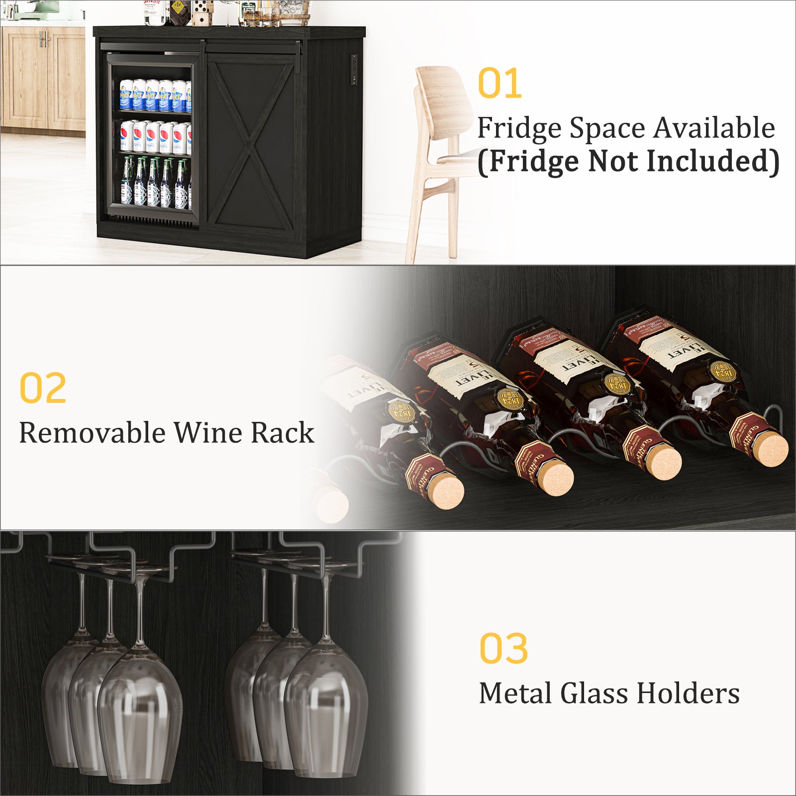 49’’ Coffee Bar Cabinet with Fridge Space, Wine Rack and Power Outlet