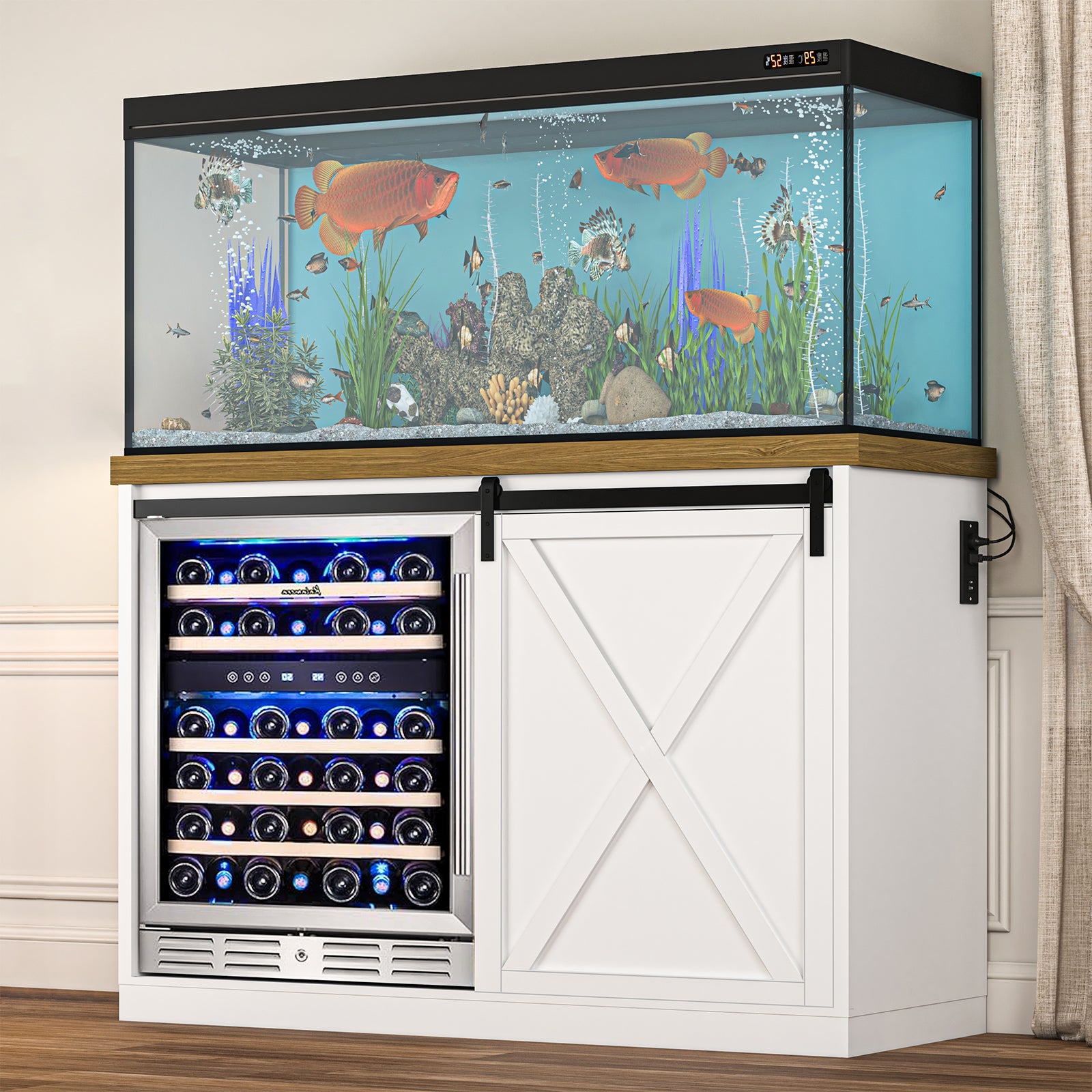 - Large Liquor Bar Cabinet (No Refrigerator): This large coffee bar cabinet offers a amount of storage space. With dimensions of 49.2’’L x 23.6’’D x 41.73’’H, it's designed to accommodate a 24’’L x 21’’D x 34’’H refrigerator perfectly. Inside, you'll find multiple shelves and compartments. The open shelves are great for displaying coffee mugs, spices, and frequently - used utensils
